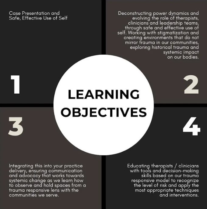 Deconstructing power dynamics and evolving the role of therapists, clinicians and leadership teams, through safe and effective use of self. Working with stigmatization and creating environments that do not mirror trauma in our communities, exploring historical trauma and systemic impact on our bodies.