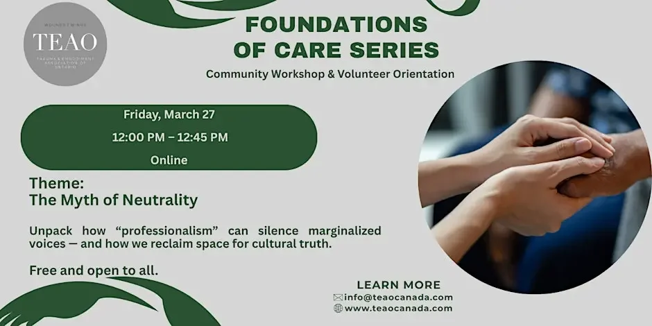 Join TEAO Canada for the launch of our new monthly series: Foundations of Care — a 45-minute workshop + orientation space designed for both interested community members and new volunteers.